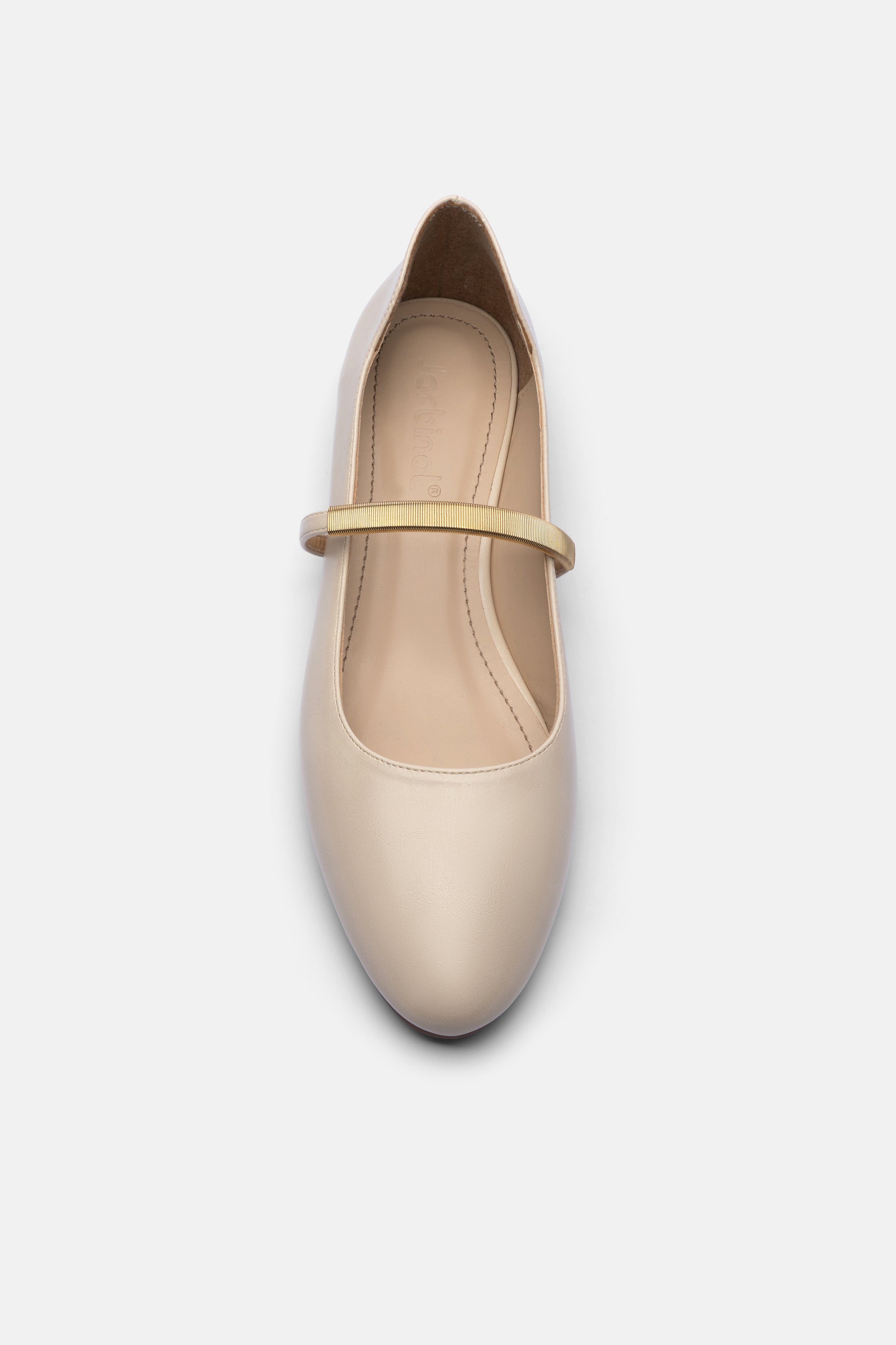 Modern Mary Jane stilinden ilham alan gold detaylı bantlı kadın babet, minimal ve zamansız tasarımıyla her kombine kolayca uyum sağlar. İnce üst bant ve metal aksesuar detayı ayakkabıya sofistike bir görünüm kazandırırken ayağı nazikçe kavrayarak gün boyu konfor sunar.