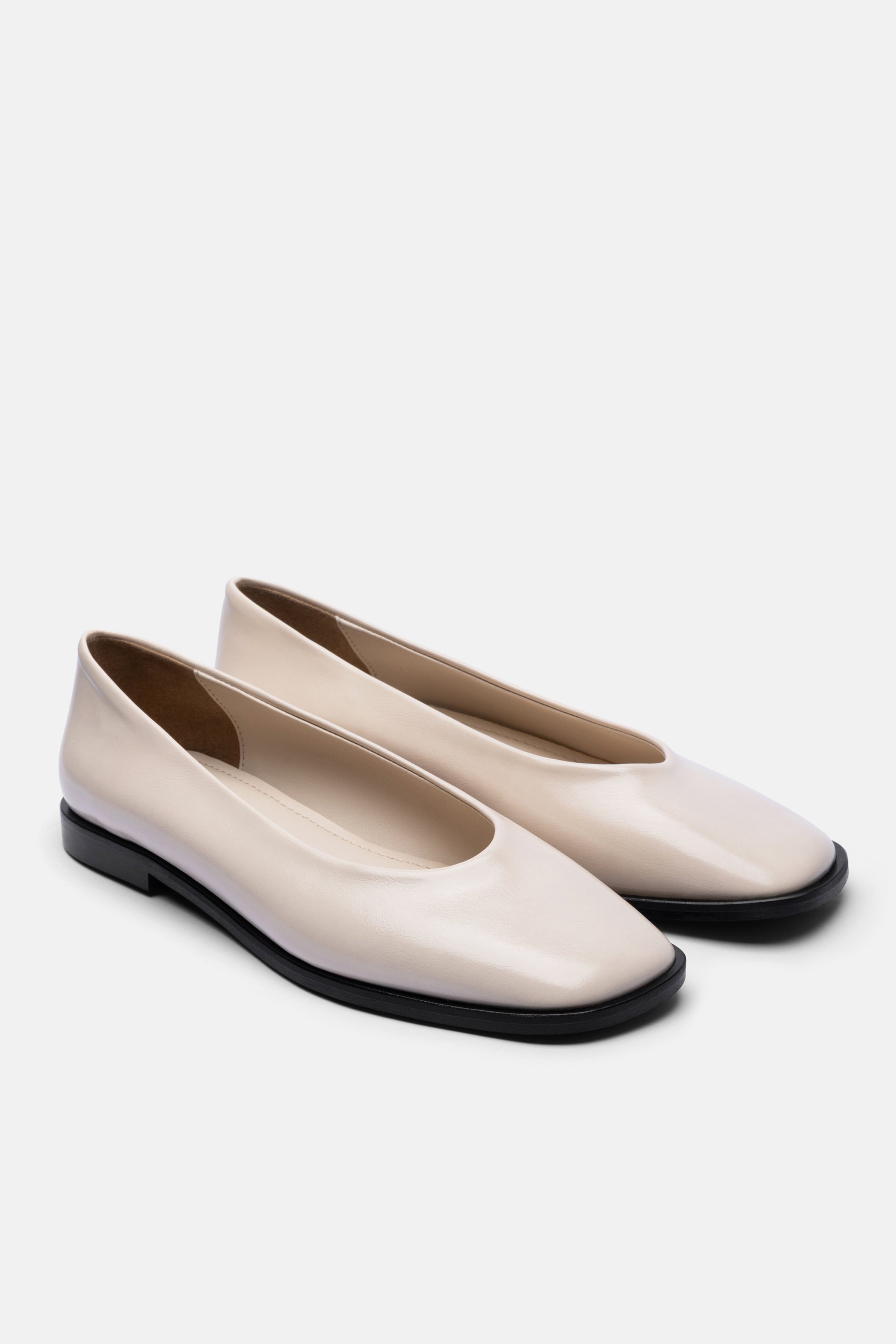 Kadın bej rengi parlak suni deri köşeli burun babet ayakkabı, sade ve zamansız tasarımıyla her stile kolayca uyum sağlar. Düz tabanı ve hafif yapısı sayesinde gün boyu rahat kullanım sunarken, köşeli burun formu modele modern bir dokunuş katar. Ofis kombinlerinden günlük şıklığa kadar geniş bir kullanım alanına sahiptir. Gardırobunuzun vazgeçilmez parçalarından biri olmaya adaydır.