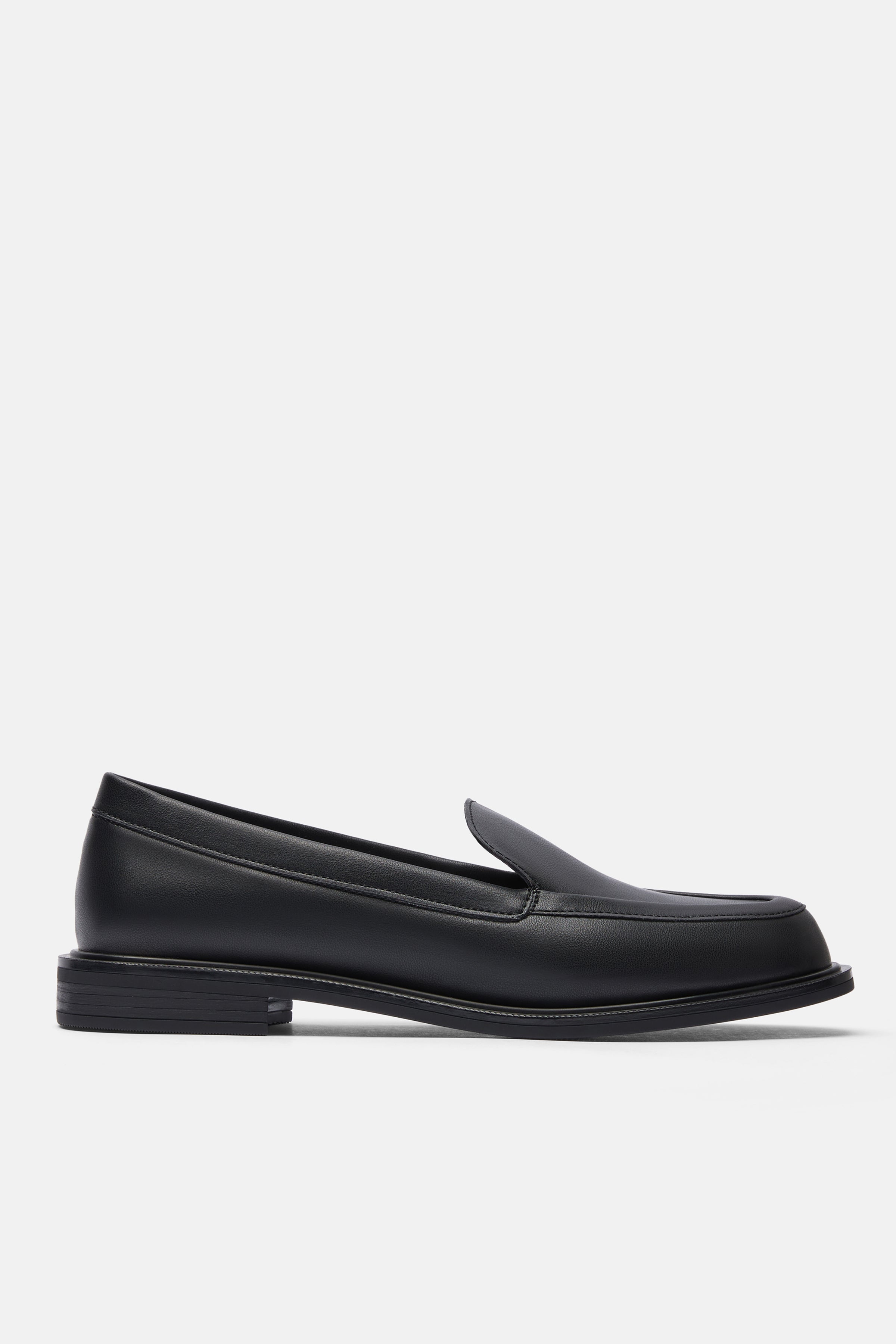Siyah renkli vegan deri Loafer. Oval burunlu, klasik loafer. Topuk: 3 cm.